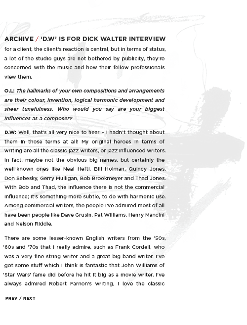 This CD served as my introduction to the talents of saxist-arranger-composer Dick Walter, and a very impressive introduction it proved to be. Each track is a Walter original, and they span a two-decade period, during which modern big band jazz has been at a premium, to say the least. As a jazz composer Dick Walter can stand alongside such worthies as Gerry Mulligan, Bill Russo, Francy Boland, Bob Florence and Bill Holman.